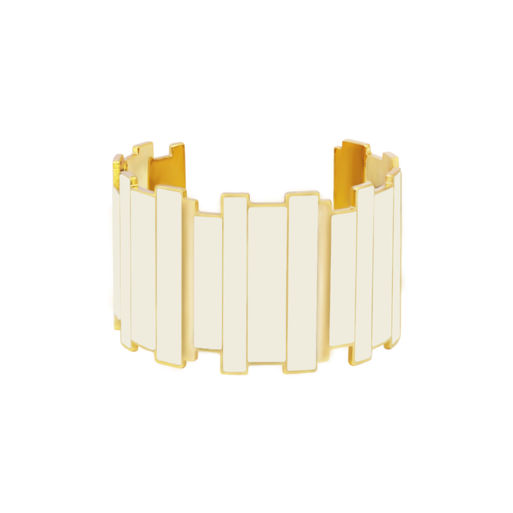 Armreif aus Messing, Gold-Finish mit farbigem Emaille. Einheitsgröße, da das Modell verstellbar ist.